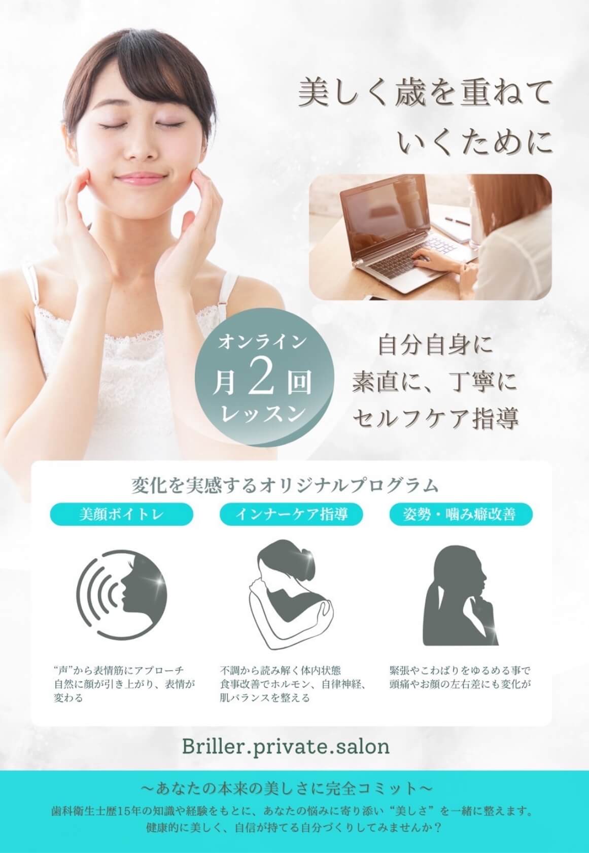 当サロンでは、歯科衛生士として15年の経験を活かし、お顔・お口中・頭・筋肉・内側からトータルでケア。